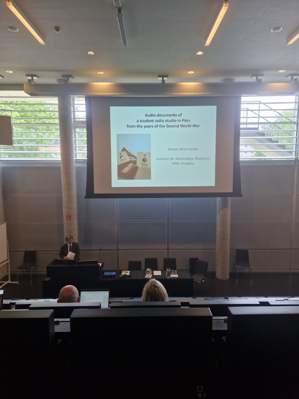 Szabó Ferenc János, a Zenetudományi Intézet 20–21. Századi Magyar Zenei Archívumának tudományos munkatársa két nemzetközi konferencián vett részt július első napjaiban. Az Early Recordings Association a University of Surrey-n megrendezett éves konferenciáján (2025. július 1–3.) diszkográfia-metodikai témájú előadást tartott és részt vett egy európai diszkográfiai adatbázisról szóló panelbeszélgetésben. A Zenei Könyvtárak Nemzetközi Szövetségének (AIBM / IAML) éves kongresszusán (Salzburg, 2025. július 6–11.) pedig a pécsi Ciszterci Gimnázium 1941 és 1944 között működött diákrádiójáról és annak fennmaradt unikális hangfelvételeiről tartott előadást, valamint különböző bizottsági üléseken, munkacsoportok tanácskozásain képviselte Magyarországot, és a IAML Audio-Visual Materials Section elnökeként a szekció két ülésén elnökölt, valamint részt vett a szekciók fórumán.