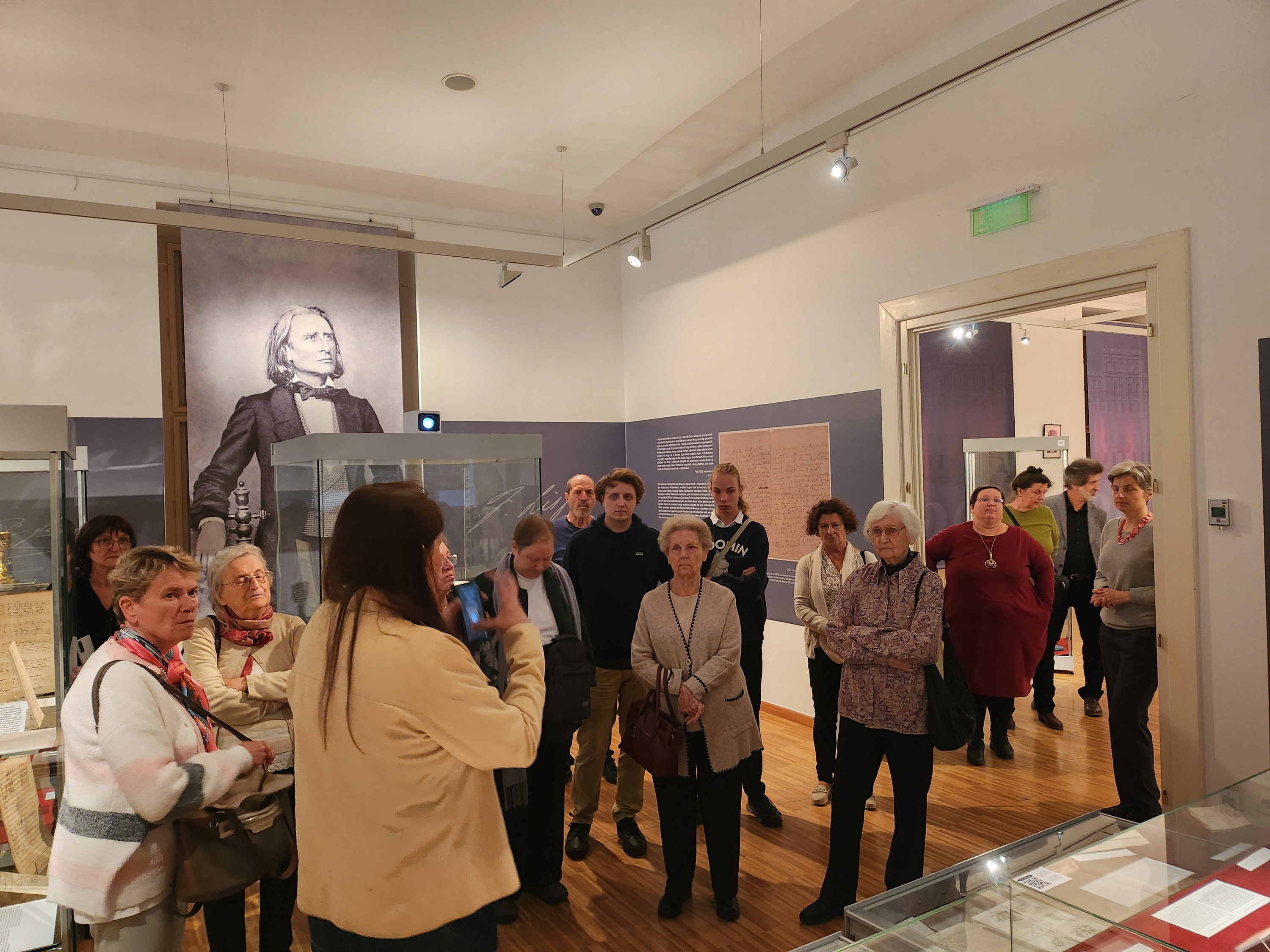 Liszt, bár 1811. október 22-én a magyarországi Doborjánban látta meg a napvilágot, hazai közép- és felsőfokú zenei oktatási intézmények hiányában külföldön igyekezett megszerezni a tehetségéhez méltó képzettséget, majd felnőttként is nagyrészt hazájától távol tevékenykedett. Magyarországra 1839 karácsonyán, pozsonyi és pesti koncertmeghívásra tért vissza először, és ettől kezdve haláláig ápolta honfitársaival a „hű rokoni” szálakat. A kapcsolatot a magyar politikai és intellektuális elit kezdeményezte, de annak fenntartására és széleskörű bővítésére Liszt maga is vágyott. A két fél együttműködésének legfontosabb eredményeként 1875-ben megalakult a Királyi Zeneakadémia, amely Liszttel és Erkel Ferenccel az elnöki és az igazgatói székben és a zongoratanszakon, majd a rövidesen felálló számos további tanszakkal együtt néhány évtizeden belül már képes volt a magyar tehetségek magas szintű hazai képzésének biztosítására. Liszt és honfitársai gazdag kapcsolati hálójába is bepillantást nyújt a Magyar ábránd: Budapesti mindennapok Erkel és Liszt korában című kiállítás, amelyet Kim Katalin vezetésével a Magyar Zenetörténeti Osztály munkatársai készítettek és ez alkalommal is ők mutattak be az érdeklődőknek.