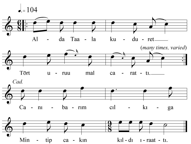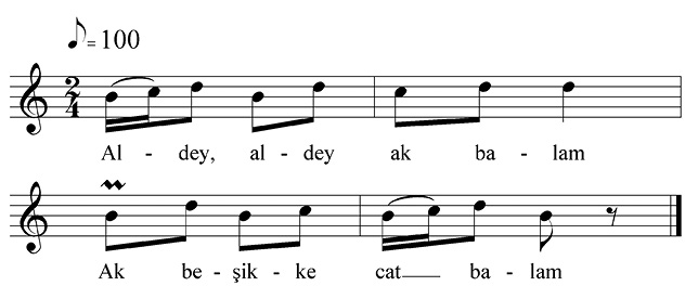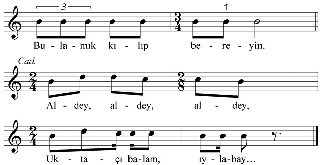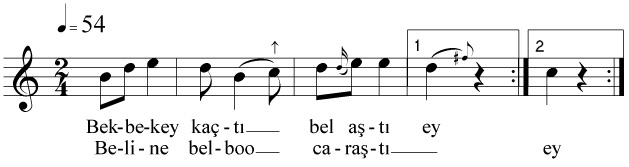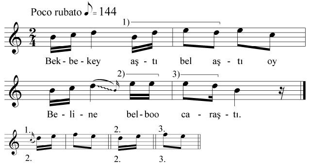 1.2.5a. The Phrygian Bekbekey tune and the twin-bar tunes rotating on the B-C-D trichord (ex.4b, ex.5, №18-26)