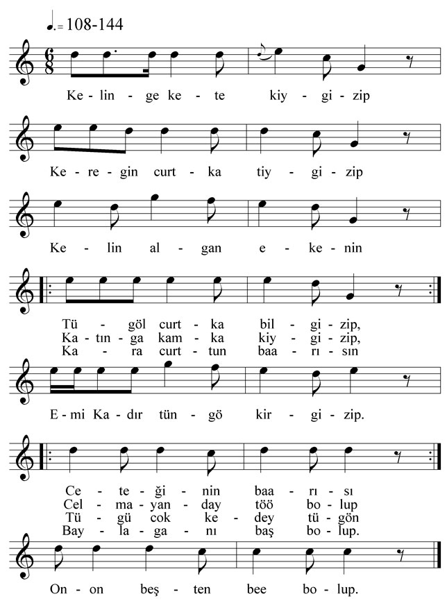 Lullaby (Beşik ırı), Cunuşaliyeva Kalbübü (1923), Bekmurat, Taş-Arık, 2004
