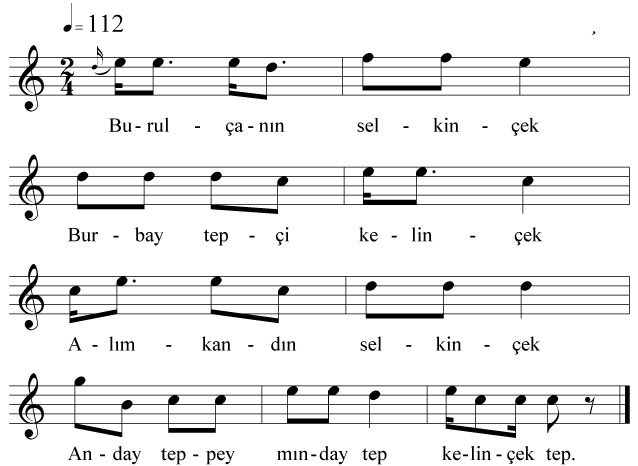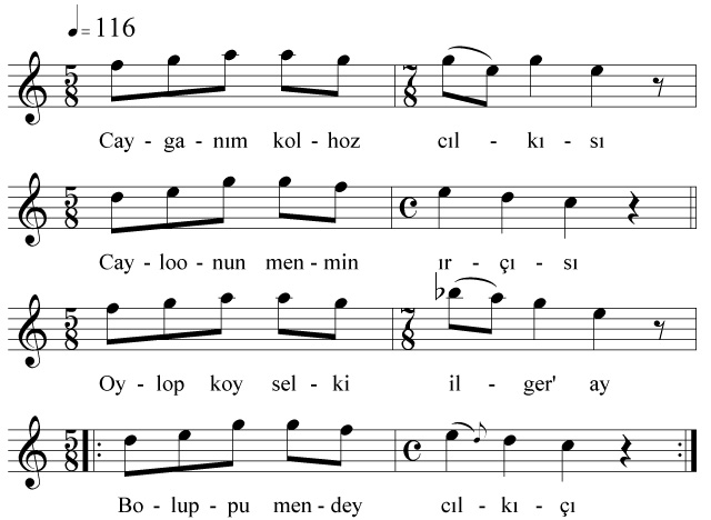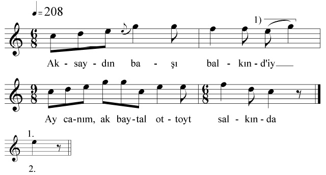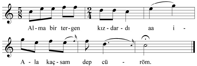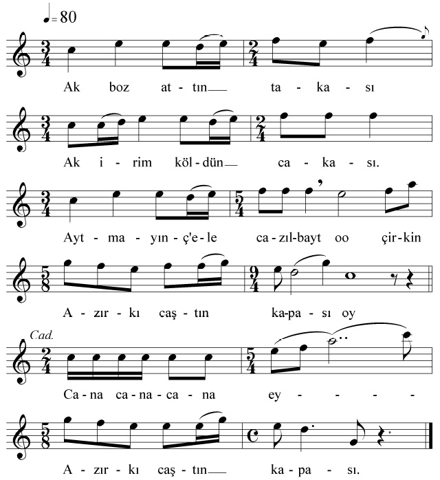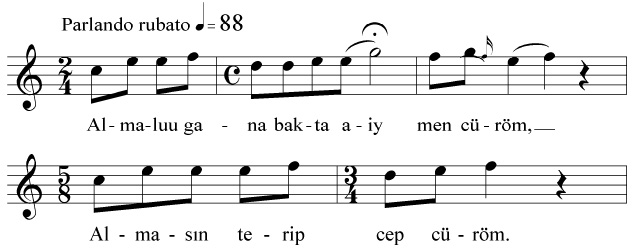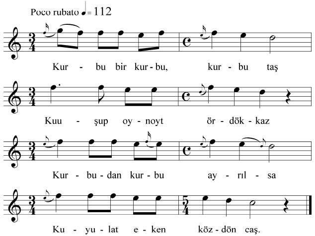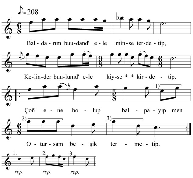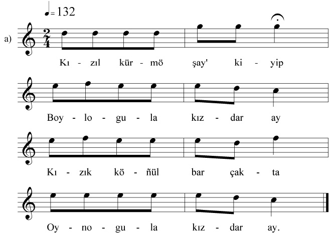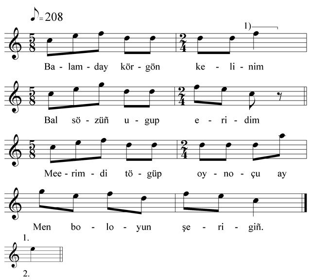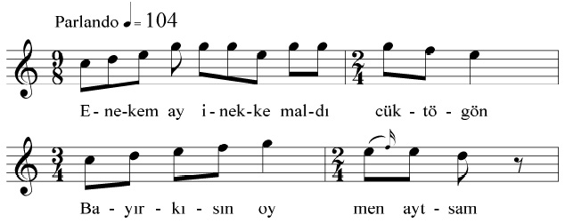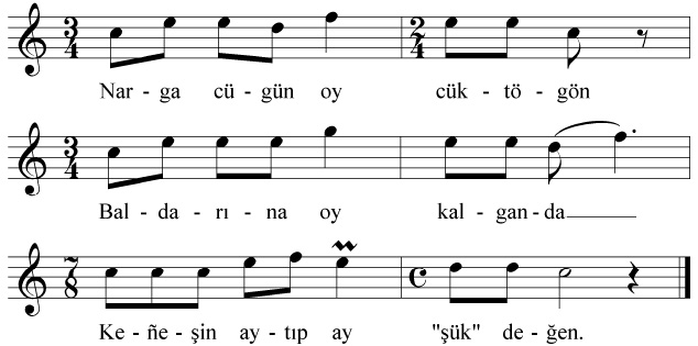 Wedding song (sung by the mother of the girl), Işenkan (1938),Suusamır, Çüy, coll. of D. Somfai Kara, 1999