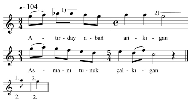 Folksong “Esimde”, Kıdırova Tursun (1921, Ceñiş), Buğu-Çıçkan, Ceñiş, 2002