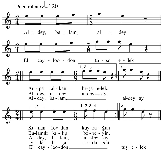Lullaby (Beşik ırı), Bekturova Anipa (1913, Ak-Moyun), Moñoldor-Çalırım, Ak-Muz, 2002