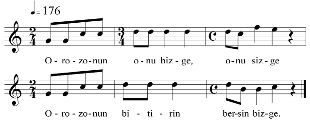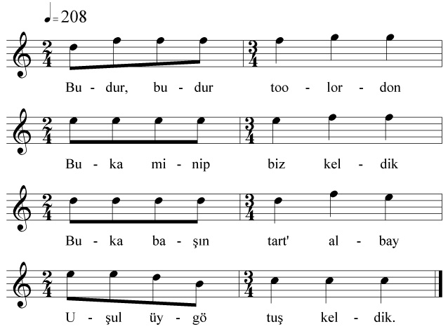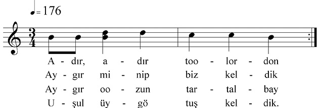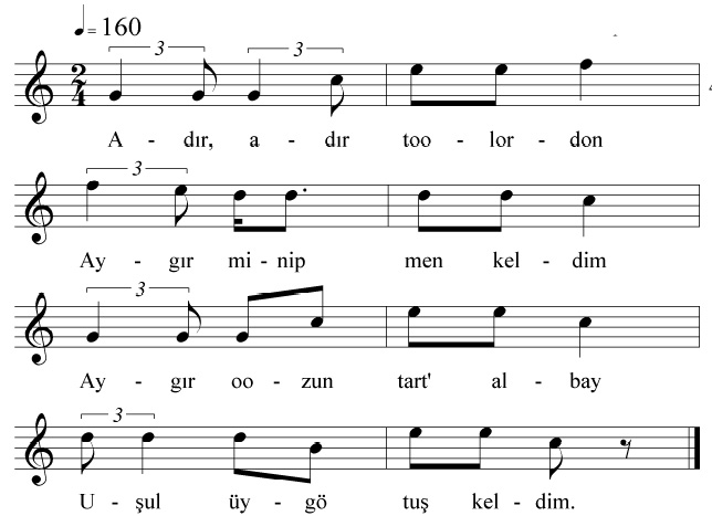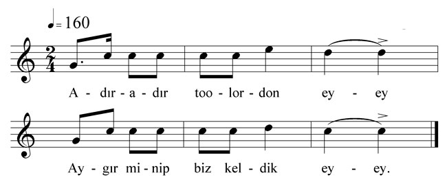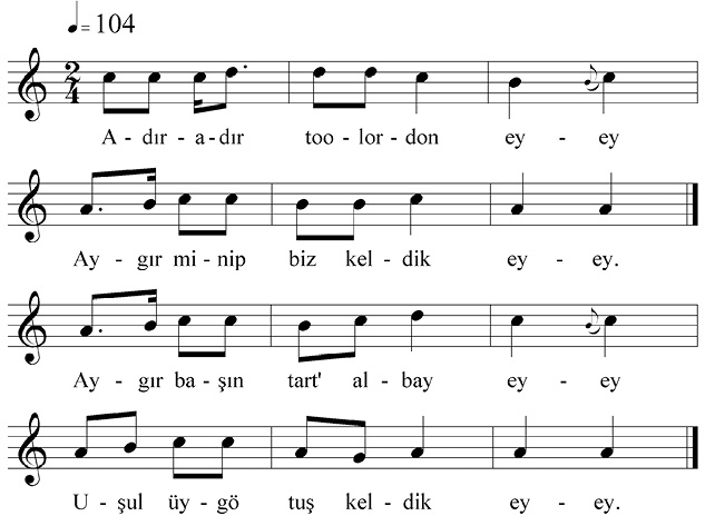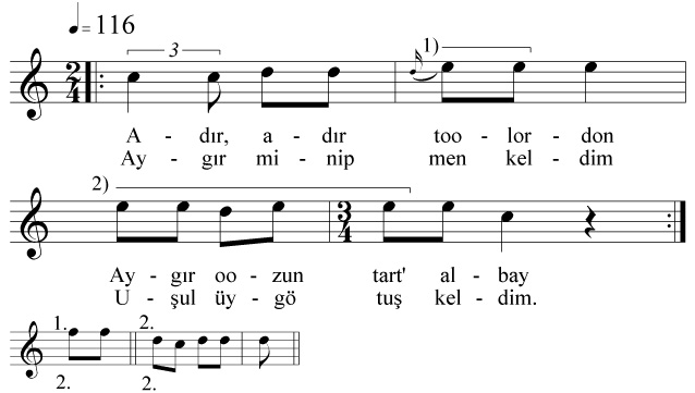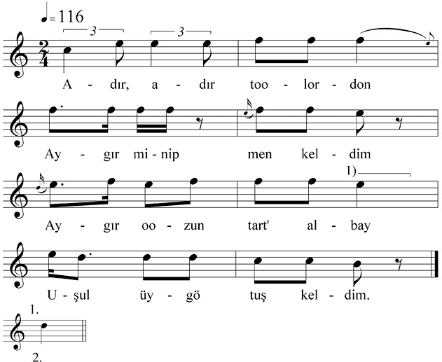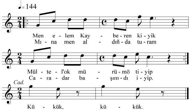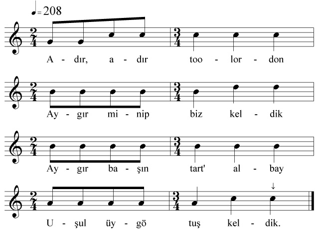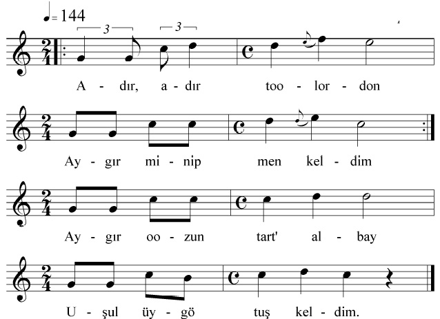 - Two-lined tunes of Major character with higher main cadences and their four-lined relatives