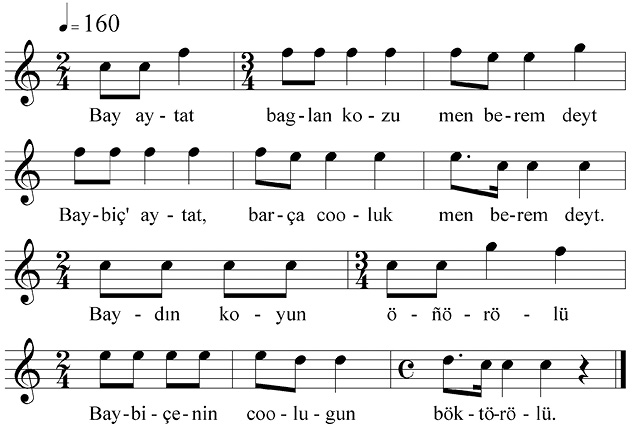 Wedding song, Süydüm apa (1924), Sokuluk, Sokuluk, coll. of D. Somfai Kara, 1999